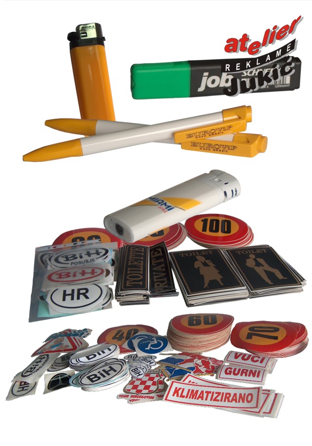 SITOTISAK TEHNIKA omogućava nam tisak na različite artikle koji će upotpuniti vaš marketing ; kišobrani, olovke, upaljači, rokovnici, kalendari, pepeljare, privjesci, metri , satovi ...